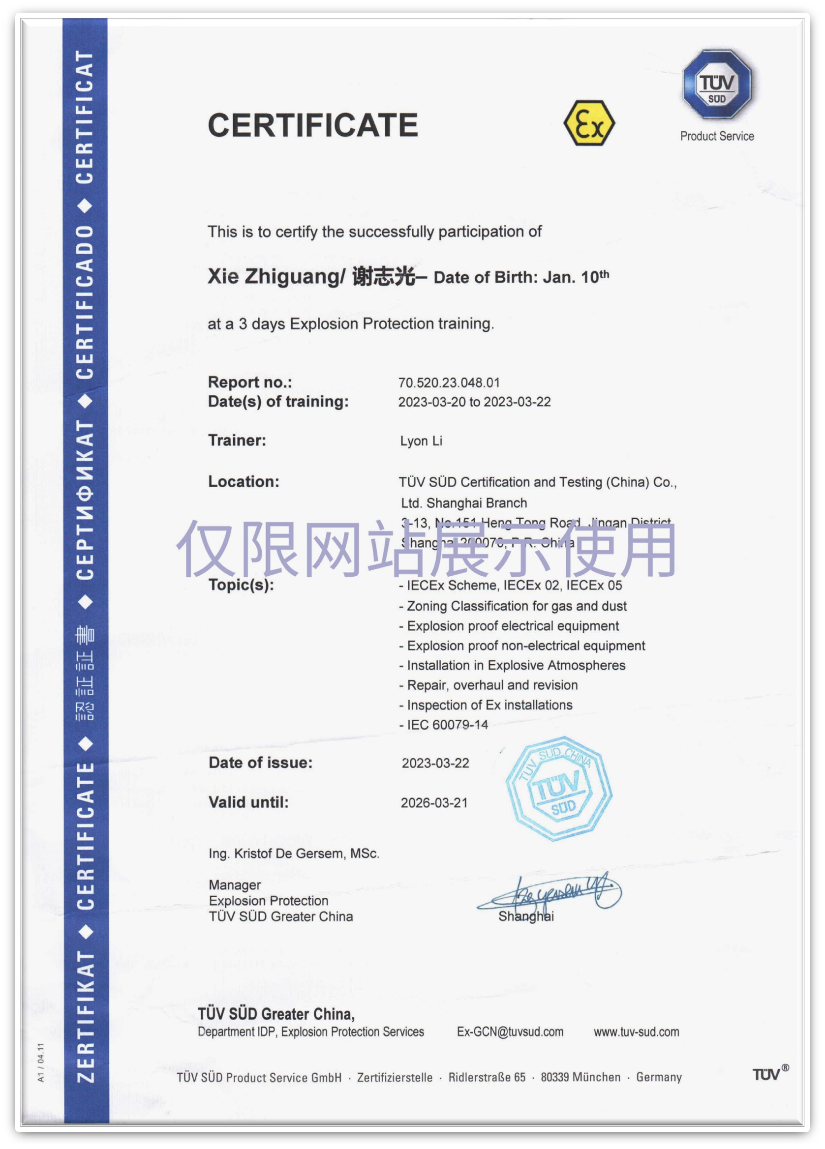 Explosion proof certificate