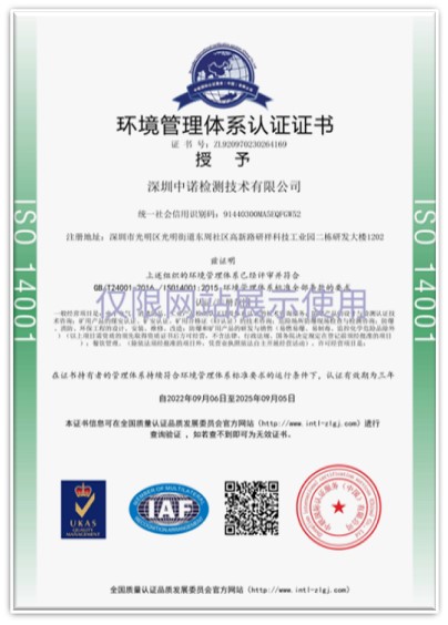 Copyright: Shenzhen Zhongnuo Testing Technology Co., Ltd.